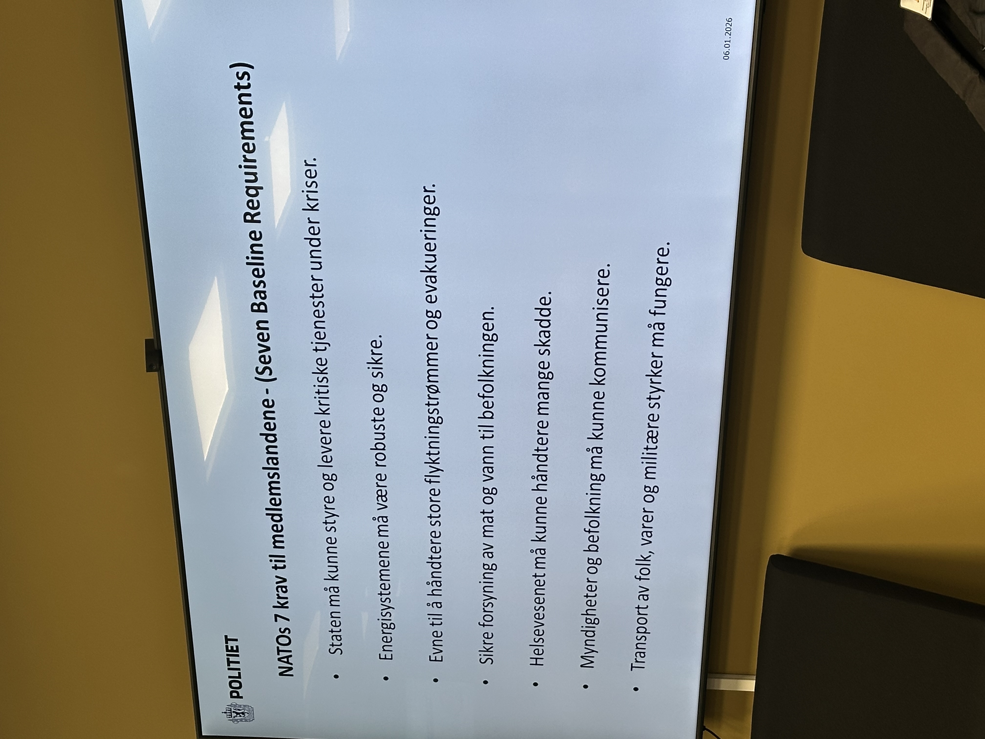 deltakarane ei grundig innføring i totalberedskaps-meldinga og arbeidet med ein langtidsplan for sivil beredskap i politiet, som vart starta opp i 2025. Han