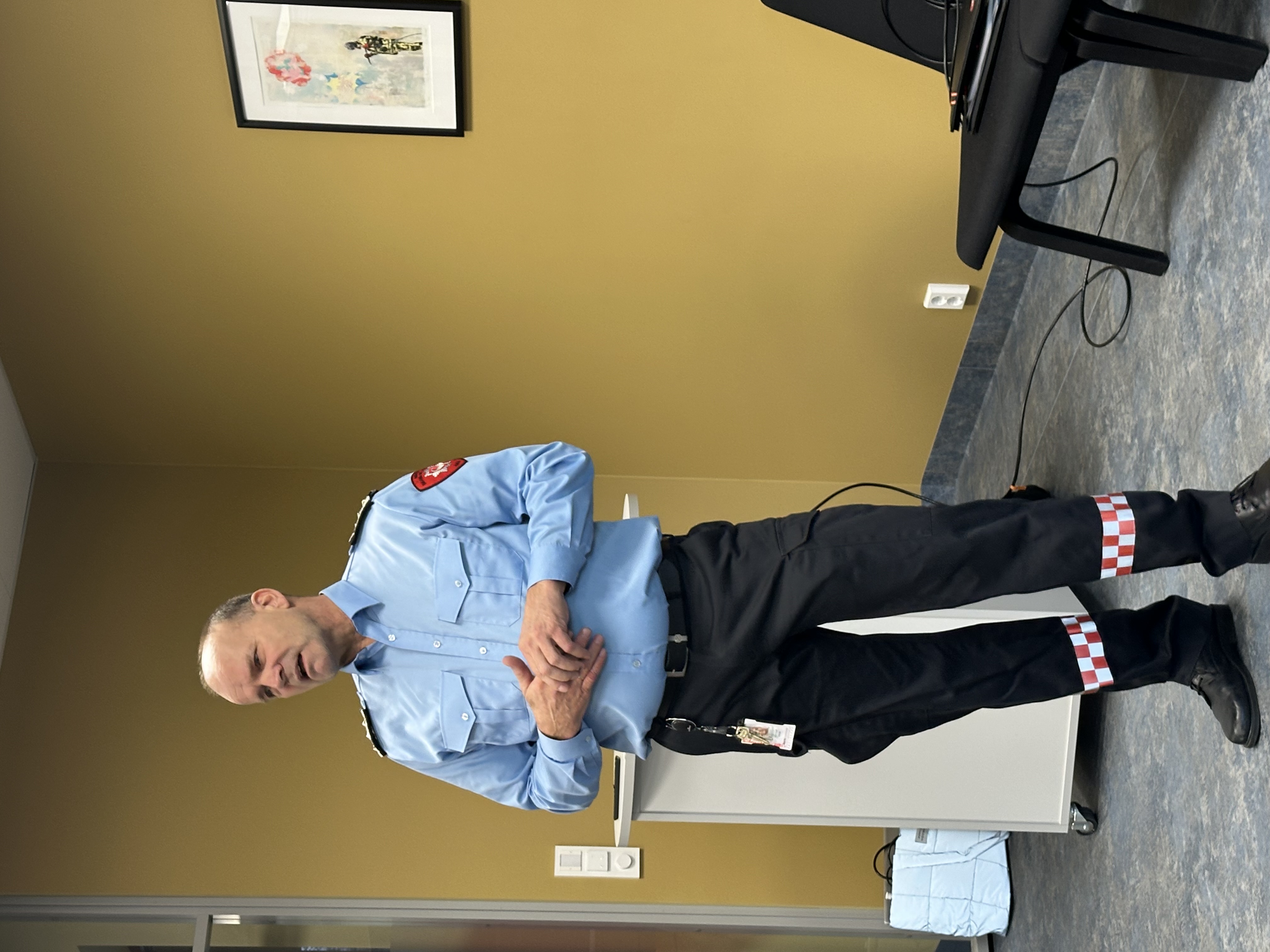 Brannsjef Ove Halleraker i Bømlo Brann og redning fortalte om dei ulike oppdraga dei har som førstelinjeteneste i kommunal beredskap. Bømlo brann og redning hadde 227 utrrykninger i 2025, av dei var 53 oppdrag helserelatert. På brannstasjonen er der nå 5 heile stillinger, brannsjef,leiar beredskap, leiar forebyggjande og to brann førebyggjerar og ein lærling. Bømlo brann og redning er dimensjonert etter krav om lov og forskrift fra DSB basert på antal innbyggjerar i kommunen. Kommunen har forutan i sentrum ubemanna brannstasjonar på Moster, Langevåg og Espevær, med deltidsstillingar tilhøyrande dei ulike stasjonane. Frukostmøtet vart avslutta med ei omvisning på brannstasjonen.